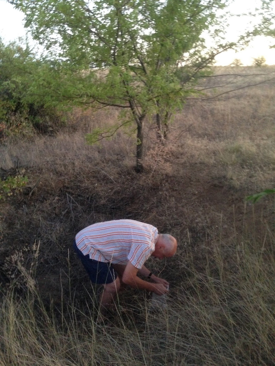 «Мы в лучах заходящего солнца отчетливо увидели длинную, с плоским, слегка покатым верхом гряду холмов. Они были покрыты уже желтеющей травой. Но удивительным образом, по полю были разбросаны одинокие, тоненькие, стройные деревца. Вдали, примерно в 300 метрах от края этого поля виднелась и небольшая рощица, как оказалось, там было полтора десятка таких деревьев. Митька побежал вперед к ней. А я шел и вдруг осознал, что это не просто деревца, почувствовал, что это, как будто бы, сквозь толщу пропитанной кровью земли пробились души погибших здесь почти 75 лет назад советских солдат.