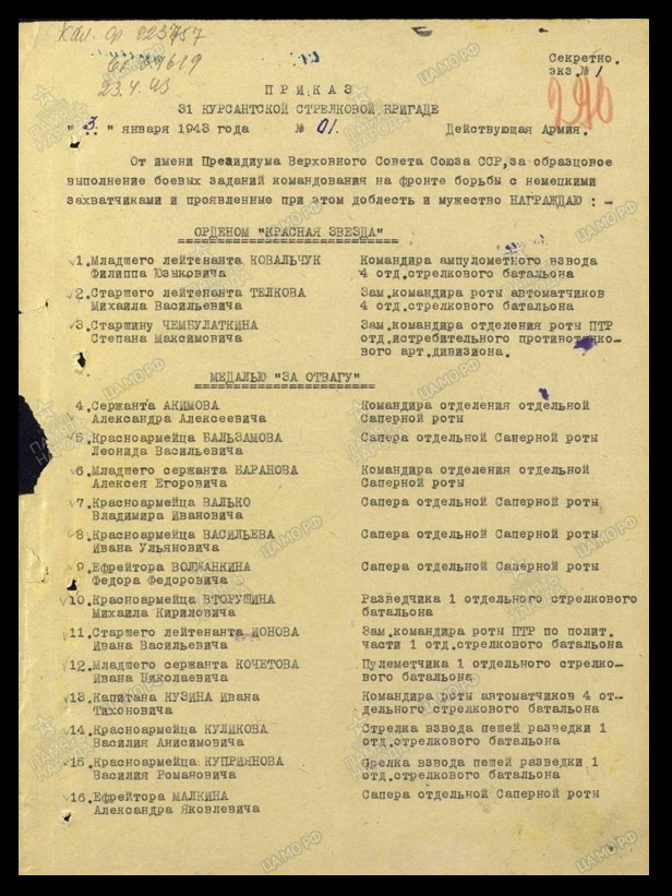 Приказ о награждении. К сожалению связь с прадедушкой оборвалась в 1943 году. Он пропал без вести, о чём сообщили прабабушке.