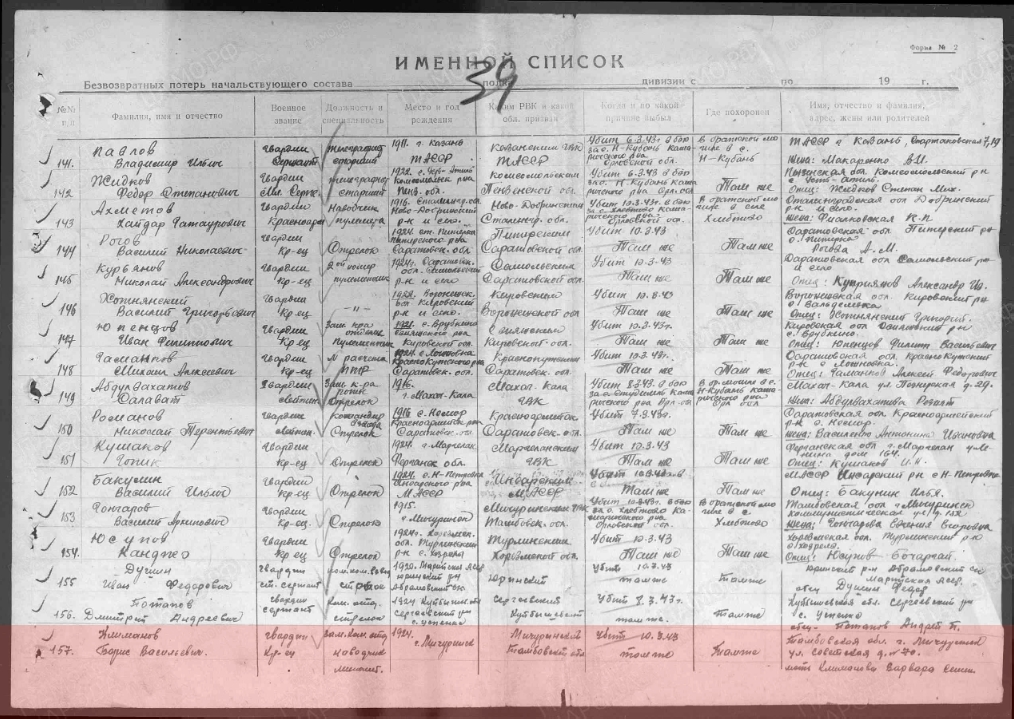 При изучении Донесений о безвозвратных потерях мы смогли найти тех, кто ошибочно внесен в списки братской могилы с. Хлебтово (погибли позже или остались живы), и тех, кто ошибочно указан в донесениях как погибший.