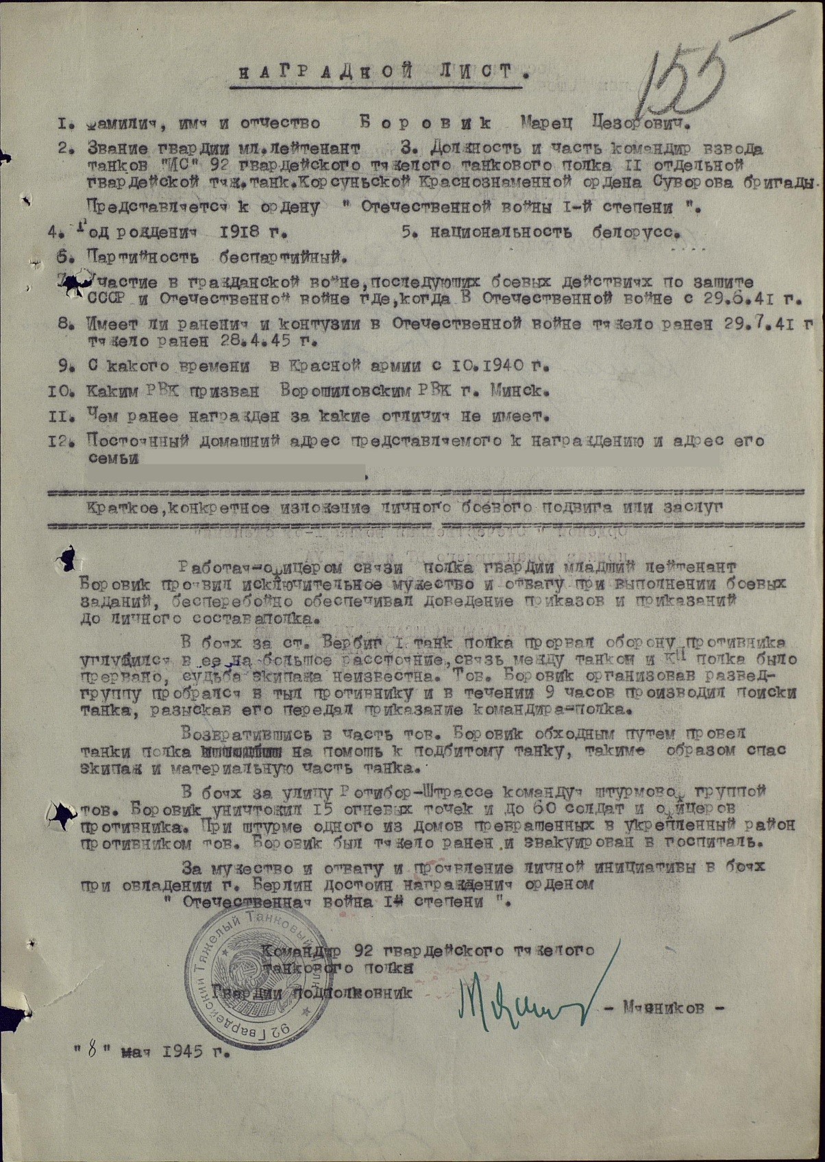 За время войны отец прошёл путь от ст. лейтенанта - командира стрелковой роты 312 стр. полка 26 стр. дивизии до майора - ст. пом. начальника оперативного отдела, начальника направления штаба 1-й ударной армии.