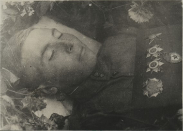 По радио КВУ лейтенант Дергунов доложил командиру дивизиона о гибели Николая. Гв. майор Соболев позвонил мне и приказал организовать вынос тела Николая на огневые позиции, найти хорошее место для могилы, похоронить, установить памятник. Тело Николая привезли на его батарею. Из тары из под снарядов бойцы стали мастерить гроб. Я вместе с зам.политом гв. капитаном Шапиро выбрали место для могилы недалеко от Снядово. Пока готовили гроб была вырыта могила. Старшина батареи одел Николая в новую гимнастерку и брюки. В гроб положили сухого сена, застелили новой плащ-накидкой. Ордена прикрепили к материи подушечки. Под голову сшили подушку. Положили тело Николая в гроб. Бойцы нарвали полевых цветов и обложили ими тело покойного. На руках гроб с телом Николая принесли к месту захоронения.
