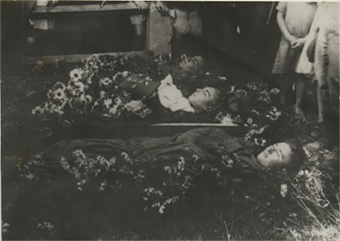 С суровым молчанием прошли бойцы батареи мимо открытой могилы. Каждый из нас бросил горсть земли. Я плакал по боевым друзьям. Плакали и местные жители, пришедшие с ближайших домов города. На могилу установили у изголовья холмика памятник с четырьмя фамилиями покойников, а также оградку из березовых жердей. Могилу усыпали полевыми цветами.