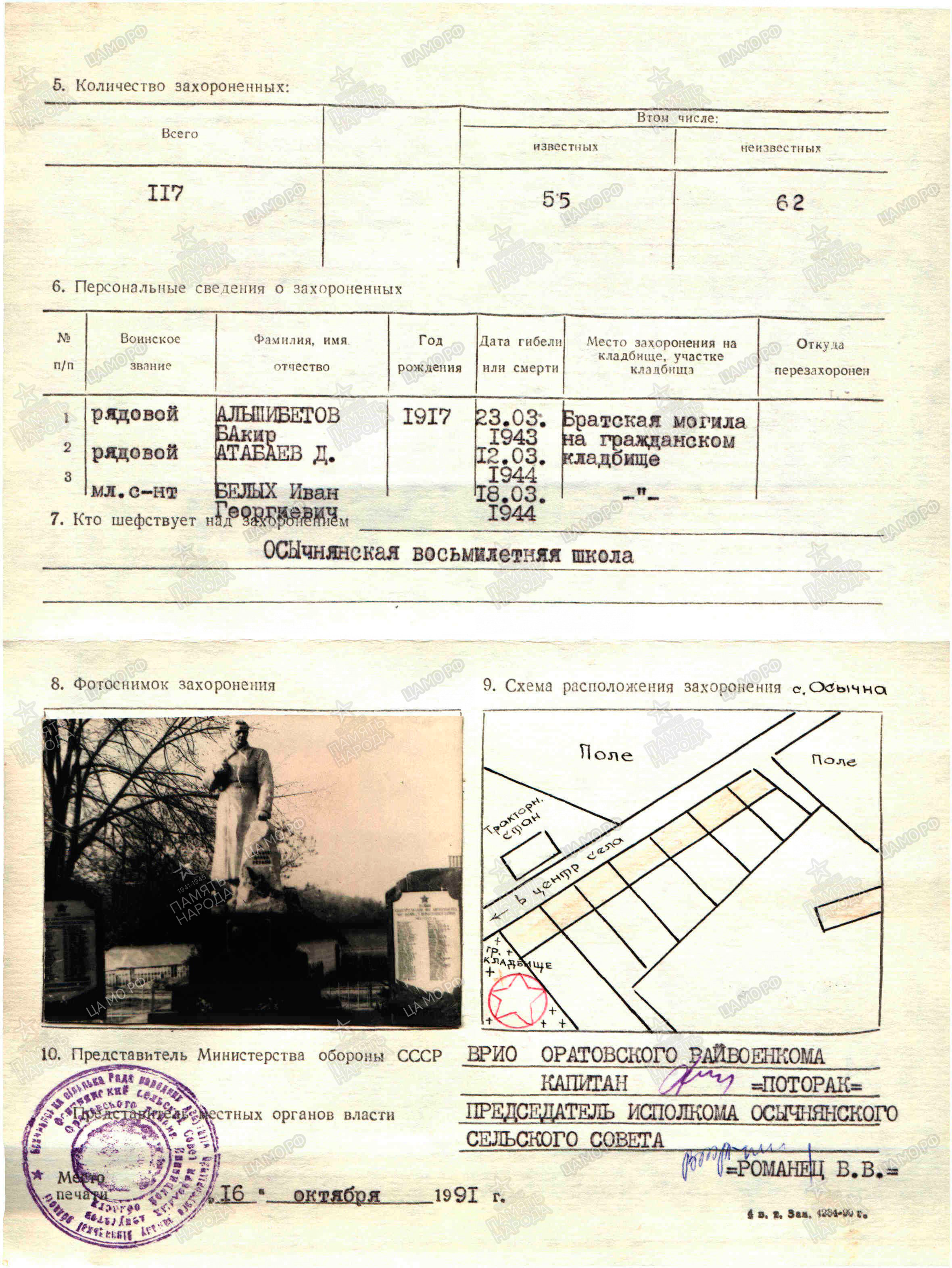— участникам Корсунь-Шевченковской битвы в годы Великой Отечественной войны 1941-1945 гг. Украинская ССР. Черкасская область. Лысянский район. Село Почапицы.