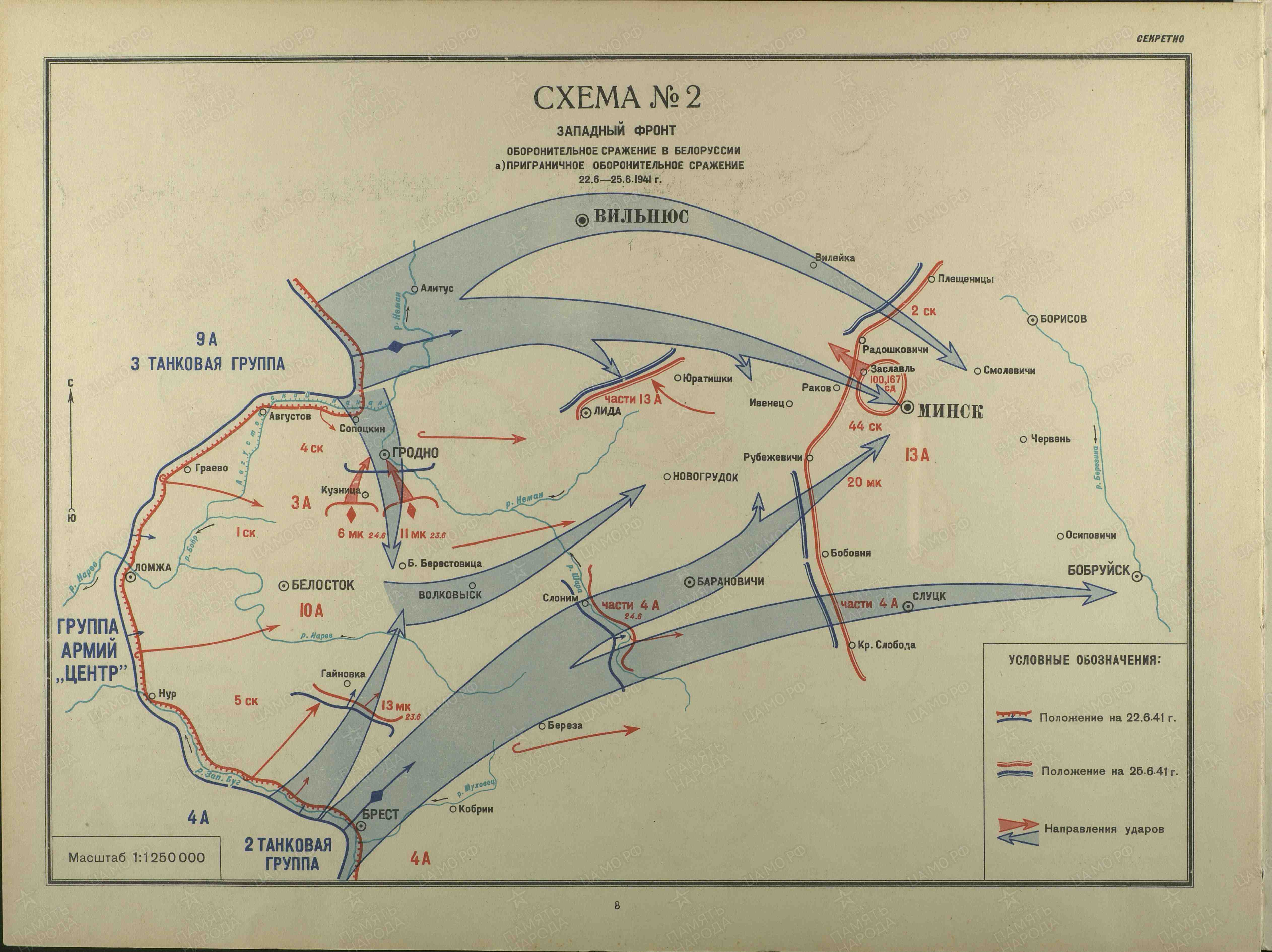 Утром 22 июня 1941 года армии нацисткой Германии вторглись на территорию СССР. Действуя согласно «плану Барбаросса», немецкие войска нанесли удары в 3-х ключевых направлениях по линии соприкосновения. Основная и самая мощная группировка Вермахта — группа армий «Центр» —атаковала границу Советского Союза на участке от Бреста до Гродно в общем направлении на Минск. План немецкого военного командования заключался в нанесении сходящегося удара силами 2-й и 3-й таковых групп с целью отсечения советских армий, действующих западнее Минска .Дальнейшее уничтожение окруженных войск возлагалось на 4-ю и 9-ю пехотные армии. Общее командование кампанией было поручено генерал-фельдмаршалу Ф. Фон Боку.