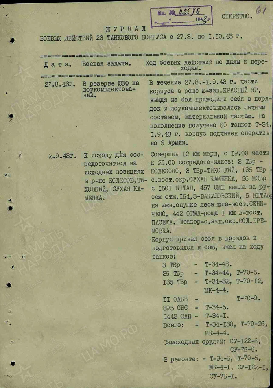 Журнал боевых действий 23 тк.