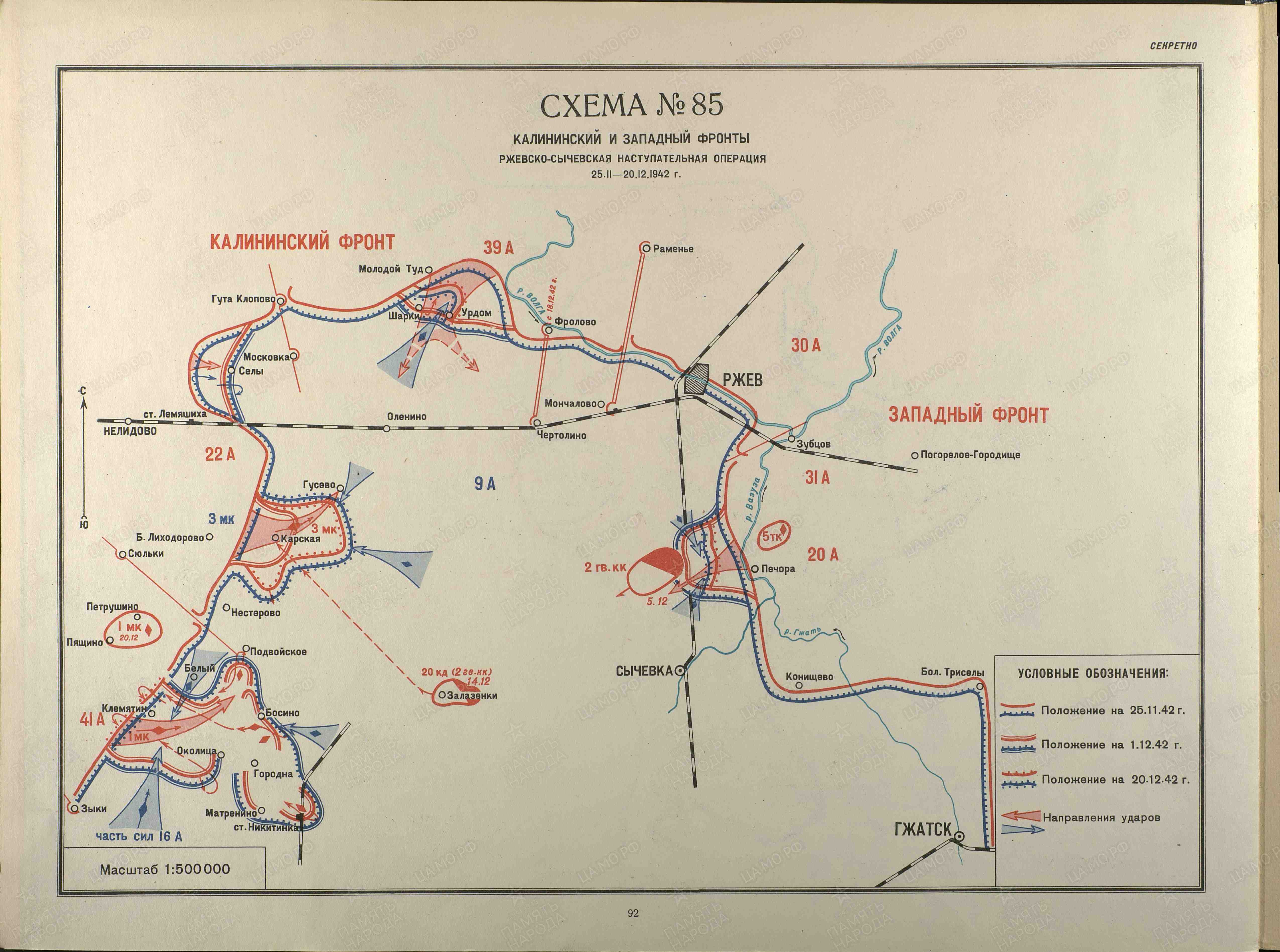 Направления ударов советских войск и войск противника