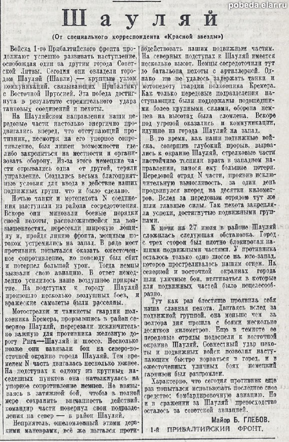 - Шауляйская наступательная операция и отражение контрударов противника в районах западнее и северо-западнее Шауляй