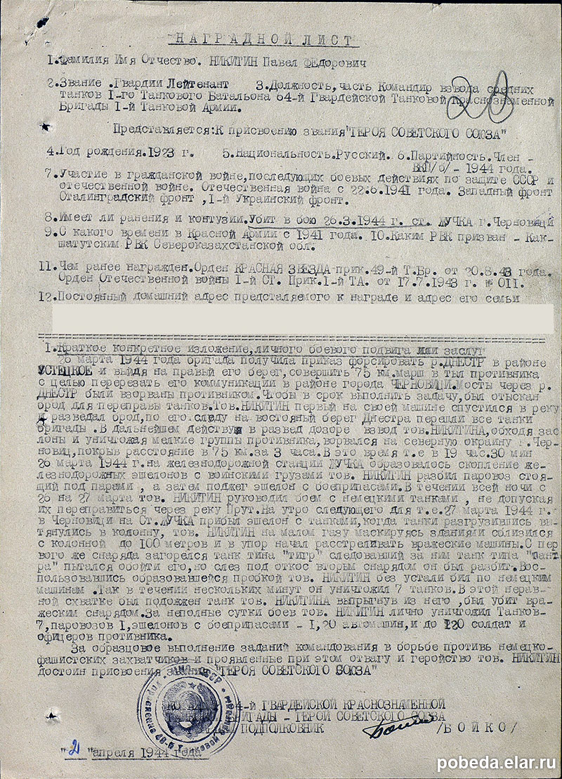 награду за сражение