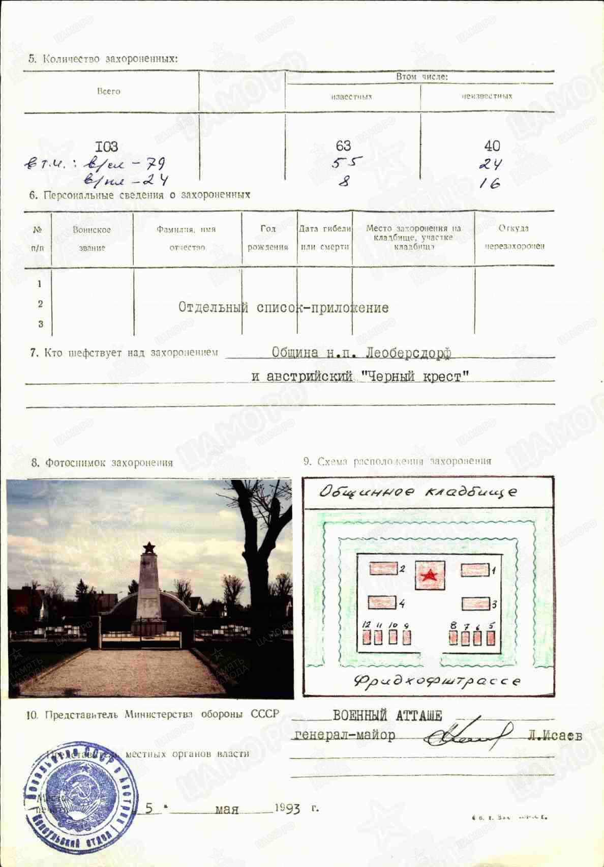 Шесть секторов захоронений военнослужащих и граждан СССР на Центральном кладбище. Недавно с двух сторон от Центрального памятника установлены православные кресты. Расположен в г. Вена, 11-й район, Зиммеринг, ул. Зиммерингхауптштрассе, 234